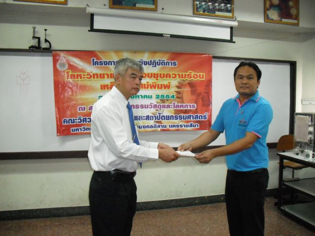 ฝึกอบรมโครงการสัมมนาเชิงปฏิบัติการ " โลหะวิทยาและการอบชุบความร้อนเหล็กกล้าแม่พิมพ์ " คณะวิศวกรรมศาสตร์ และสถาปัตยกรรมศาสตร์ มหาวิทยาลัยเทคโนโลยีราชมงคลอีสาน วันที่ 24-25 สิงหาคม 2554