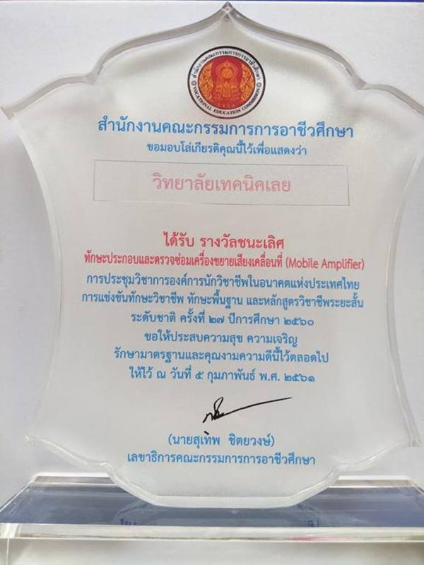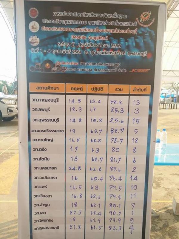 การแข่งขันทักษะระดับชาติ สาขาอิเล็กทรอนิกส์ ประเภทการประกอบเครื่องเสียง ระหว่างวันที่ 1-5 กุมภาพันธ์ 2561 ณ จ.สุพรรณยุรี